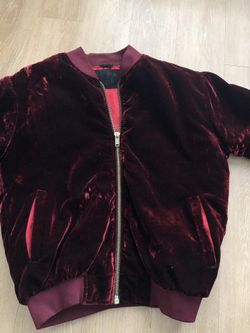 Velvet burgundy bomber jacket$80Corona, CA