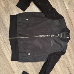 Bebe Black Lace Zip Up Sleeve Bomber Jacket With Pockets Size Medium $20Fontana, CA