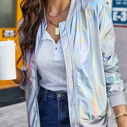 Edm Rave Jacket Holographic Zip Up Bomber Jacket $20Fontana, CA