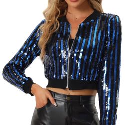 Medium Sequin Long Sleeve Shiny Party Zip-Up Bomber Cropped Jacket$25Fontana, CA