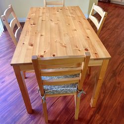 IKEA HÄGERNÄS dining set, which includes a rectangular table and four matching chairs made of solid pine.$239Temecula, CA