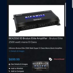 Hifonics Brutus Elite Amp 2550.1 $250Redlands, CA