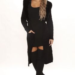 NEW! Fashion Nova Black Cardigan With Faux Fur Hoodie $50Riverside, CA