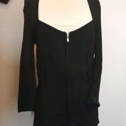 CACHE Black 3/4 Sleeve Zip Up Knit Top Rhinestone Dual Zipper Pulls Women's sz S$17Lake Forest, CA