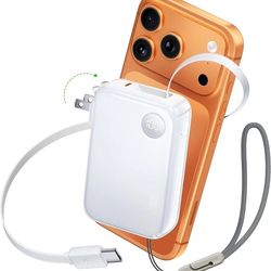 HOU 3 in 1 Portable Power Bank 10000mAh, 35W PD Fast Charging, Retractable USB-C Cable, Foldable Wall Plug, Dual Device Charging, FCC&UL Certified, Co$40Ontario, CA