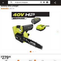 RYOBI 40V HP Brushless 12 in. Top Handle Battery Chainsaw with 4.0 Battery and Charger $189$189Fontana, CA
