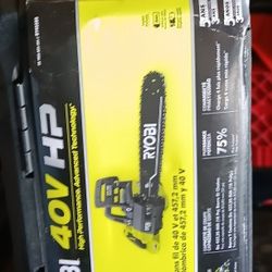 RYOBI 40V CORDLESS CHAINSAW 16 IN WITH BATTERY 5.0 AH AND CHARGER $275San Bernardino, CA