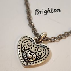 BRIGHTON Love Blooms Small Heart Pendant Silver Plate Necklace & Pouch #22$25Lake Forest, CA
