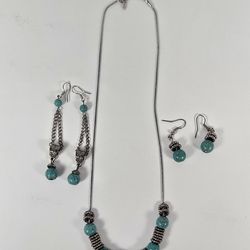 Turquoise Necklace and Earring Set Simulated Stones Silver Tone$15Hemet, CA