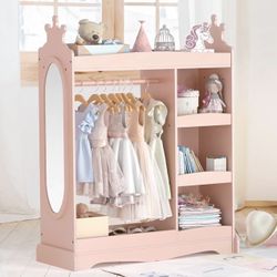 Curipeer Kids Dress up Storage with Mirror, Kids Wardrobe with 3 Hooks, Kids Closet for Girls Boys, Open Hanging Armoire Costume Organizer for Bedroom$60Murrieta, CA