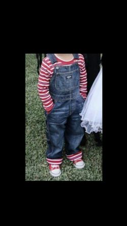 Chucky kids Halloween costume with shoes shirt and overalls 5t and shoes 10$35Riverside, CA