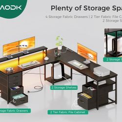 66" L Shaped Computer Desk, 113“ Reversible Home Office Desk with File Cabinet & 4 Fabric Drawers, Two Person Desk with LED Lights & Power O$90Ontario, CA