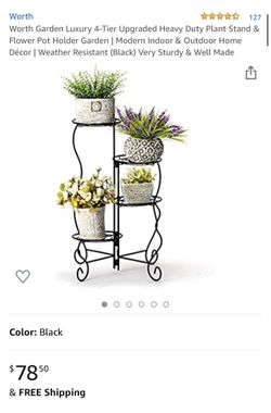 Worth Garden Luxury 4-Tier Upgraded Heavy Duty Plant Stand & Flower Pot Holder Garden | Modern Indoor & Outdoor Home Décor | Weather Resistant (Black$70Bloomington, CA