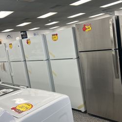 GE TOP FREEZER REFRIGERATOR WHITE AND STAINLESS STEEL COLOR BRAND NEW OPEN BOX!!! 18’ And 22’ Cuft Capacity!!!!$600Hemet, CA
