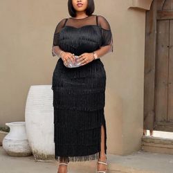 XL Women's Mesh See Through Crewneck Patchwork Tassel Tiered Fringe Long Dress$20Fontana, CA