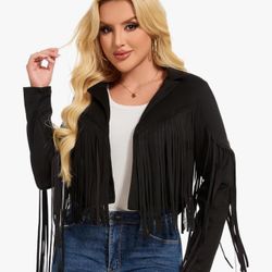 Medium Women's Chic Cropped Tassel Fringe Jacket Faux Suede Moto Jacket Vintage Lapel Long Sleeve Coat Hippie Cardigan$15Fontana, CA