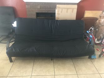 Modern Sofa Bed: Wood Frame Construction, Black PVC Futon, Enhanced by Stainless Legs and Two Functional Armrest Holders$235Riverside, CA