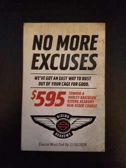 $595 for Harley Davidson Ride Academy$250Loma Linda, CA