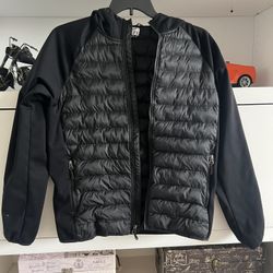 Calvin Klein Men Black Stretch Jacket W/ Fleece Lined Bib Hooded Zip Coat Size M $50Riverside, CA