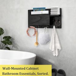 Wall Mount Key Holder, Solid Wood Mail Organizer with Hooks and Storage Shelf, Entryway Storage Decor for Home, Black$10Ontario, CA