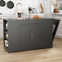 53" Kitchen Island with Storage, Kitchen Cart W/Tilt Out Trash Can Holder & Soli$150Rancho Cucamonga, CA
