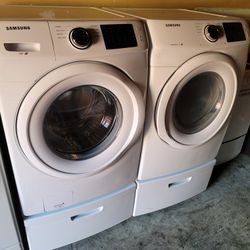 Samsung Front Load Washer And Stackable Gas Dryer Set With Pedestals $799San Bernardino, CA