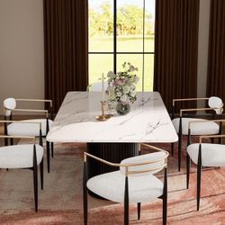 Luxury Faux Marble Top Column Base Dining Table Rectangular Metal Frame in White for Kitchen $460Jurupa Valley, CA