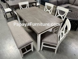 New! 6pcs Dining Set, Table And Chairs, Bench, Dinette Set, Dining Room Set, Table, Chairs, Kitchen Table, Dinette Set, White Wooden Table Dining Set $399Chino, CA