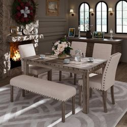 New! 6pcs Dining Set, TAble And Chairs, Bench, Kitchen Table, Dinette Set, Dining Room Set, Casual Dining Set, Rectangular Table, Table, Chairs, Bench$369Chino, CA