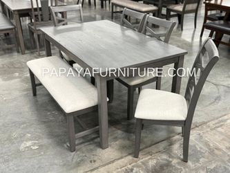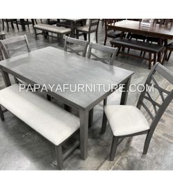 Super Deal! 6-Pcs Dining Set, Wood Dining Set, 4 Chairs , 1 bench with a Table, Kitchen Furniture, Casual dining room set, Matching Dining Chairs Set.$369Chino Hills, California