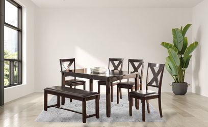 6-Piece Classic Crafted Dining Set – Rectangular table with chairs and bench. Includes table, chairs, and bench, ideal for a kitchen or dining room$448Chino, CA