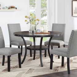 5-Piece Dining Set, Round Dining Set, Farmhouse Dining Table, Chairs, Table and Chairs, Dinette Set, Kitchen Table, Gray wood Table Top with OffWhite $435Corona, CA