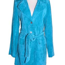 Turquoise Teal Suede Marciano Leather Trench Coat Size Large Women's Vintage$90Corona, CA