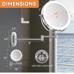 Rechargeable Wall Mounted Lighted Makeup Mirror, 8" Double Sided 1X/10X Magnifying Vanity Mirror, 3 Color Lights Touch Dimmable Bathroom Cosmetic with$18Corona, CA