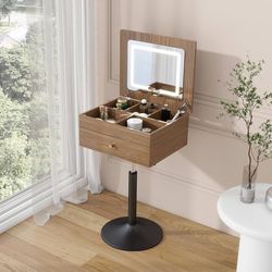 1116 Small Vanity Desk with Adjustable Height Rotating 3 in 1 Flip Top Makeup Vanity with Mirror and Lights Mini Corner Brown Dressing Table for Bedro$80Bloomington, CA
