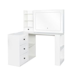 37 Middle Size Left Bedside Cabinet Vanity Table + Cushioned Stool, Large Sliding, Touch Control, Tri-color Switching, Brightness Adjust LED Mirror, H$240San Bernardino, CA