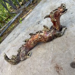 Vintage Garden Art/ Indoor Baby Dragon Handmade Garden Art, Artist Signed Art Pottery Dark Green Maroon Glaze Asian Water Dragon Figure $10Riverside, CA