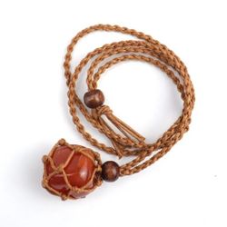 1pc Natural Crystal Red Agate Stone Mesh Pocket Pendant Moonlight Stone Necklace$20Running Springs, CA
