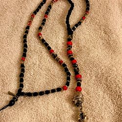 Handmade red & Black beaded necklace with black skulls. Dagger pendant -$75Rialto, CA