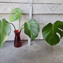 Monstera Deliciosa Plant Water Propagated Cutting In Red Vase$16Riverside, CA