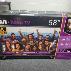 BRAND NEW IN BOX RCA ROKU SMART TV. 58". 4K ULTRA HD. COMES WITH REMOTE AND CAN ALSO BE CONTROLLED WITH SMART PHONE THROUGH ROKU APP.