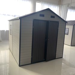 8x8x7.6FT Outdoor Resin Storage Shed with Windows, Strong Aluminum Frame & Floor for Garden, Backyard Organization (White+Brown)$950San Bernardino, CA