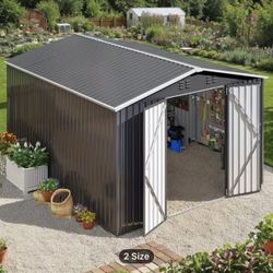 10x12FT Outdoor Storage Shed Large Metal Garden Shed with Double Door Two Window Waterproof Tool Shed for Backyard Patio Lawn Poolside ,Grey$550Fontana, CA