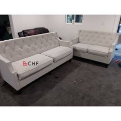 2-Pieces Luxury Soft Linen Fabric Tufted Buttons High Back Contour Armrest Nailheads Trim Living Room Sofa Set$549Rancho Cucamonga, CA