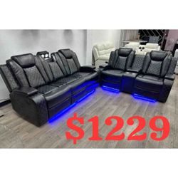 Black Breathing Leather 2 -Piece Living Room Recliner Sofa Set - Limited Time Offer $1,229Riverside, CA