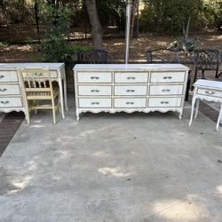 Vintage Hollywood Regency Mid Century Modern French Provincial Dresser, Desk, and Nightstand Set Of 3 Beautiful Bedroom Pieces$750Oak Glen, CA