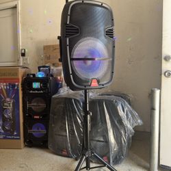 Rechargeable Speaker with Tripod ! 15” woofer-3000 watts/ Mic also included ! Treble & Bass adjuster / Guitar input ! Fm Radio/USB/RCA INPUT/AUX/S$160Moreno Valley, CA