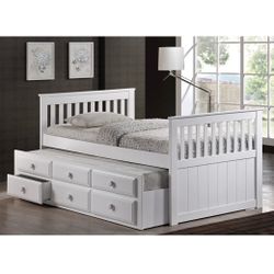 White Twin Over Twin Wooden Platform Bed With Trundle And Storage Drawers Fully Slated No Bunkie Board Needed Brand New In Box Firm Price $360$360Moreno Valley, CA