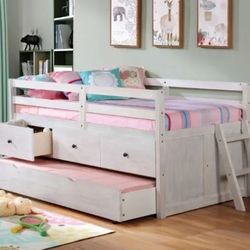 White Twin Over Twin Wooden Platform Bed With Trundle And Storage Drawers Fully Slated No Bunkie Board Needed Brand New In Box Firm Price $360$360Riverside, CA