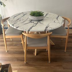 46.4" Round Dining Table Set, Mid Century Modern Round Dining Table for 4-6 Person, Steel Legs, Leisure Coffee Table for Kitchen Dining Room, Save Sp$120Fontana, CA
